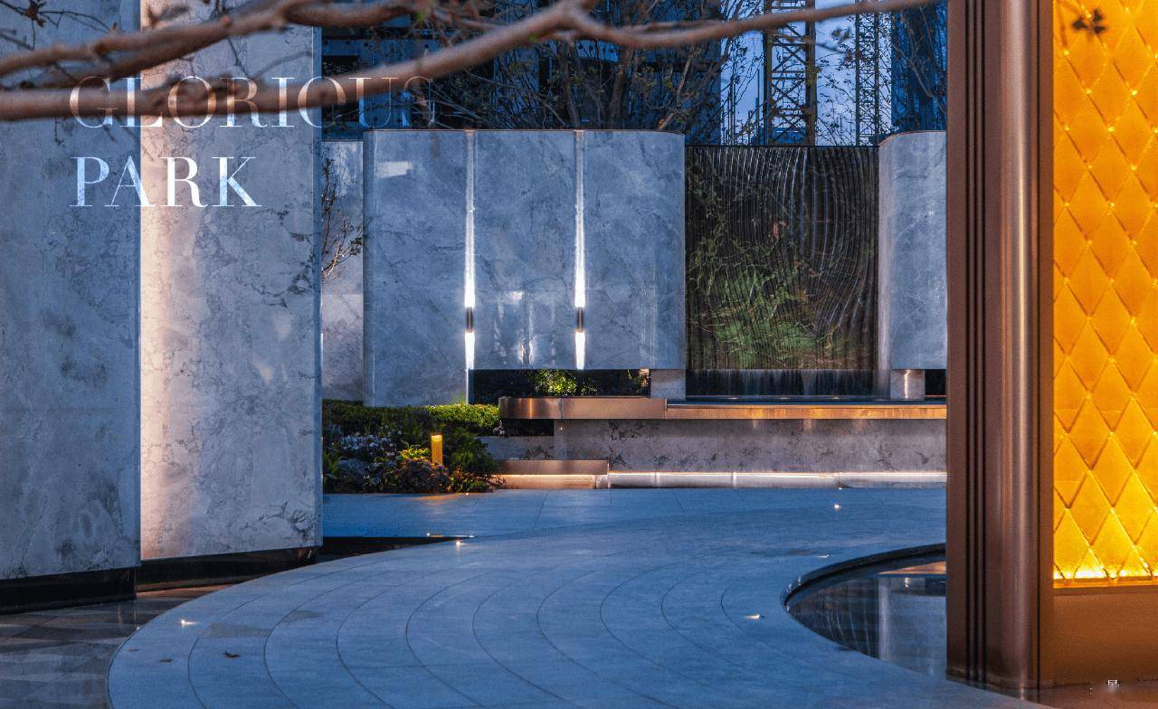 项目入口的景墙颇具匠心◆▽,由1200多块手工烧制的菱形琉璃砖拼装而成,每一块砖都经过1400℃的高温烧制◇▼,在光线的映照下尽显质感。同时,园区大量使用鱼肚灰奢石,设计师坚持对石材侧面进行费时、费料的弧形转角处理,搭配生动的流水景观,让天然材质的温润与人工营造的精巧完美交融,每一步都能感受到自然与艺术的双重滋养○。