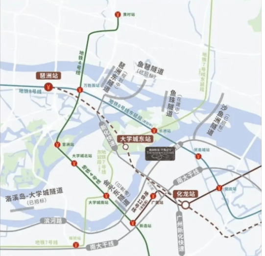 自驾出行方面,项目周边有南大干线、新化快速等多条主干道贯穿,交通网络四通八达。通过6大跨江隧道,可快速连接海珠、天河等中心区域☆,通勤效率较高。其中,通过新化快速路,5分钟可到达大学城=,15分钟可抵达琶洲、金融城••,30分钟即可到达珠江新城……,能够轻松满足业主的日常通勤和出行需求☆★。