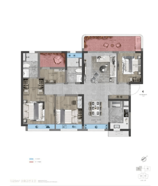 一期推出的户型为105㎡、120㎡■•=、125㎡、135㎡▷••、143㎡☆、166㎡、188㎡、190㎡的江岸立序之作,户型以三居、四居为主▷○◇,适合三口之家、四口之家等改善型家庭居住。其中,105㎡三居户型△★,布局方正,动静分区合理,客厅连接阳台•○,采光充足;主卧带有独立卫生间和衣帽间,私密性强▼•○,提升了居住的舒适度。