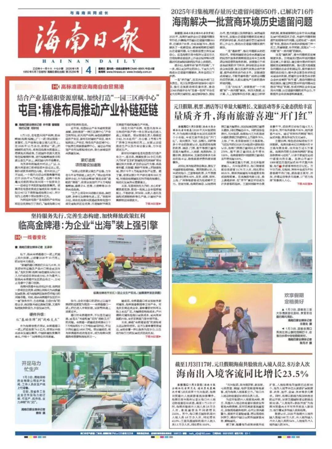1月4日,海南日报头版头条刊发报道《屯昌:精准布局推动产业补链延链》□○,全文如下: