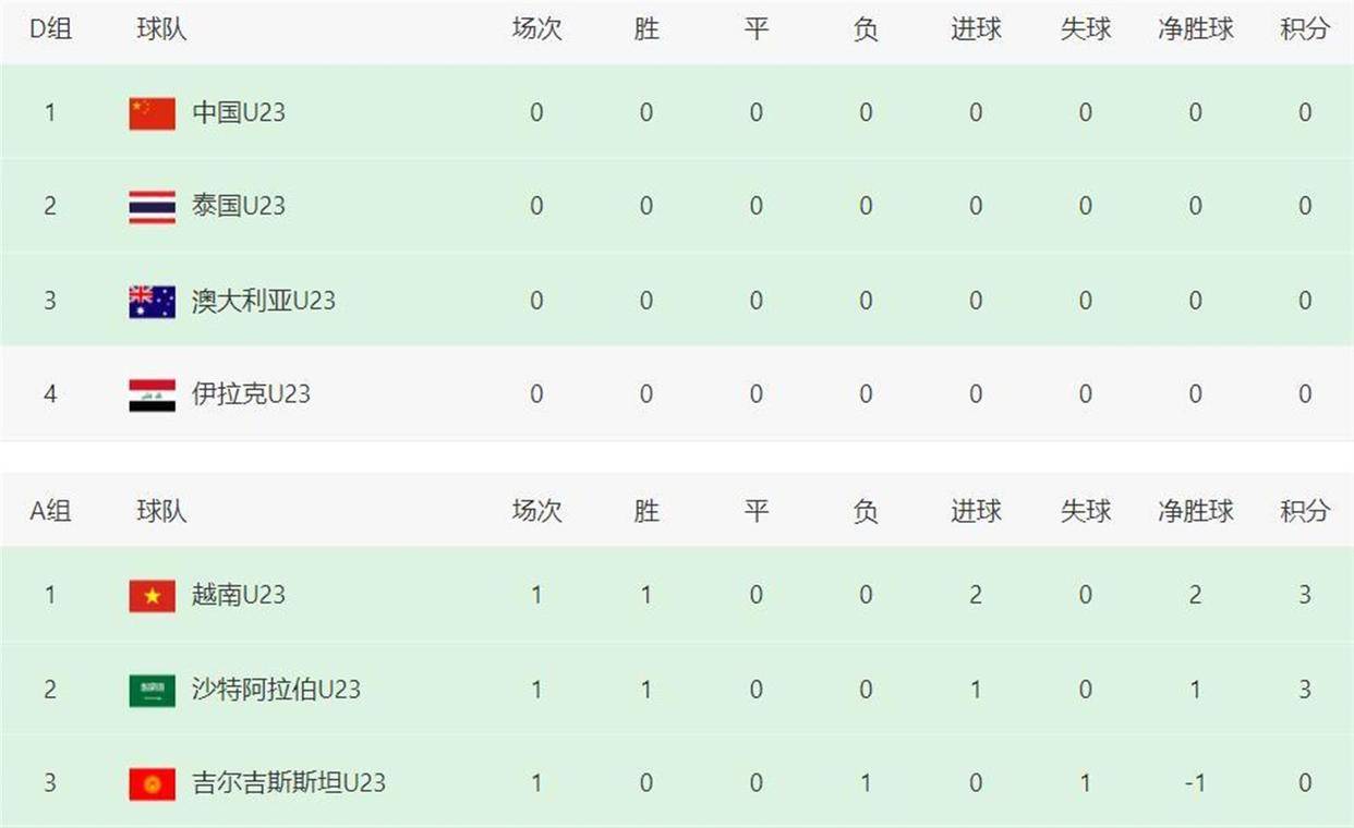 首轮战罢,积分榜上日本凭借净胜球优势领跑B组◆▷▲,乌兹别克斯坦在C组登顶◇•-,越南意外领跑A组。 而所有这些,都只是中国队登场前的预热。