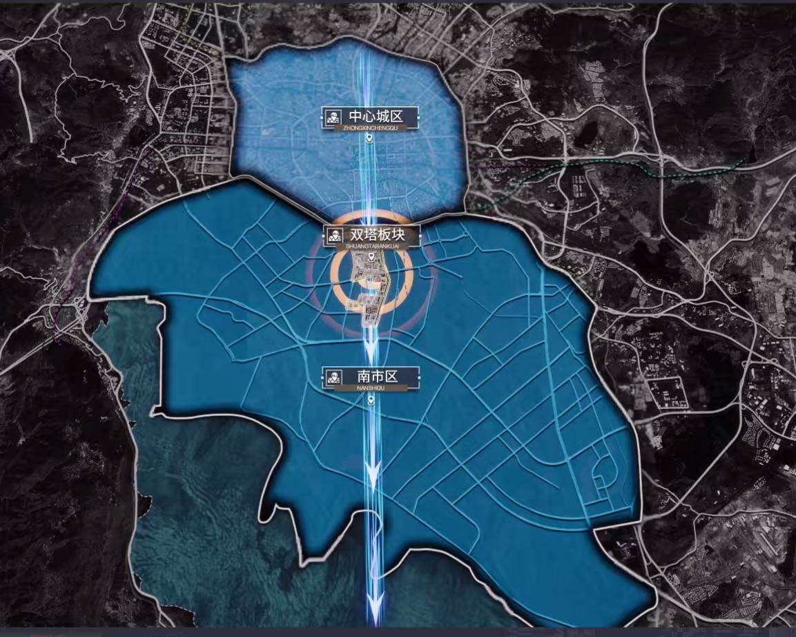 从一湖四片到一城三区,南市区核心地位不变,新规向南拓展◆,重心南移已成大趋势,万达板块北连老城区、南接未来副中心,拥享城市核心资源;