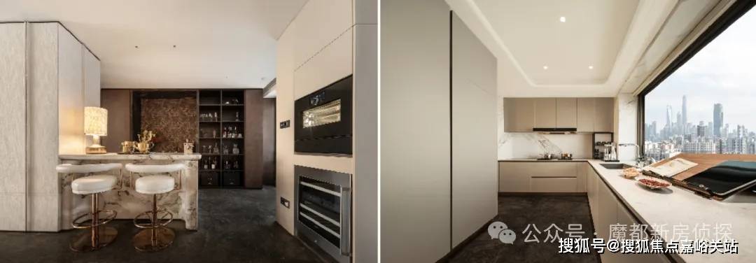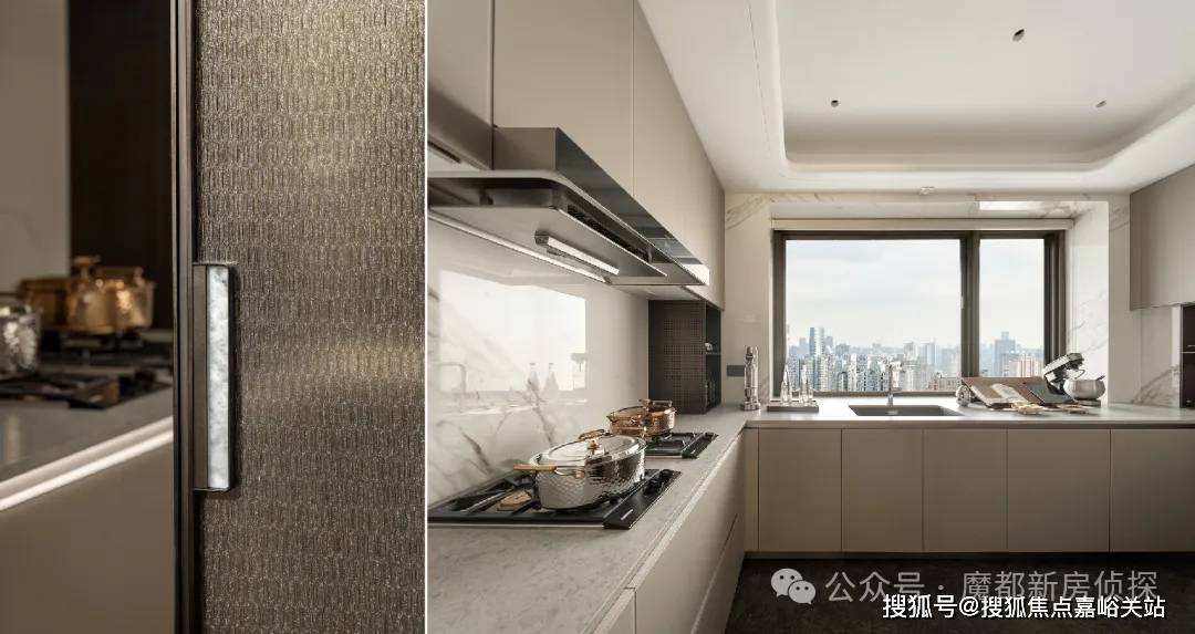 威乃达坡璃烤漆橱柜-○、与卡拉拉金大岩板台面相融,同时嘉格纳十件套满足每一种味蕾的偏好•▪•,厨房内▲◁▽,灶台/油烟机/洗机/冰箱(独立分体设计)五件套;向外,嘉格纳咖啡机/暖碟机/酒柜/烤箱/蒸箱等西厨五件套配置,构筑中西共融的烹饪场域••。金茂璞元预约热线☎:✅✅