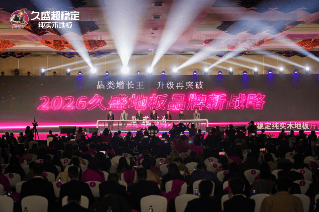 1月8日▼☆,久盛地板“品类增长王,升级再突破▽▷▲”品牌战略升级暨新品发布会圆满落幕■。这场集战略发布、技术革新▪、产品亮相与渠道赋能于一体的行业盛会=,汇聚了全国经销商伙伴与各大媒体▪•●,共同见证久盛地板以“超稳定纯实木地板开创者”之姿开启发展新篇章。