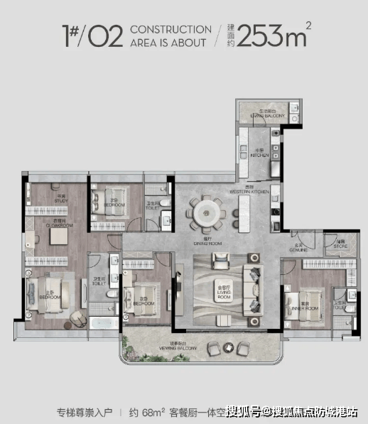 所有户型均采用高品质精装修交付◇……,配备全屋中央空调◆、一线品牌厨具与卫浴产品◁●,同时配备智能安防装置,细节之处尽显品质◁。户型设计充分考虑人体工学原理,动线合理,功能分区明确,既满足日常居住需求,又彰显高端人居格调。