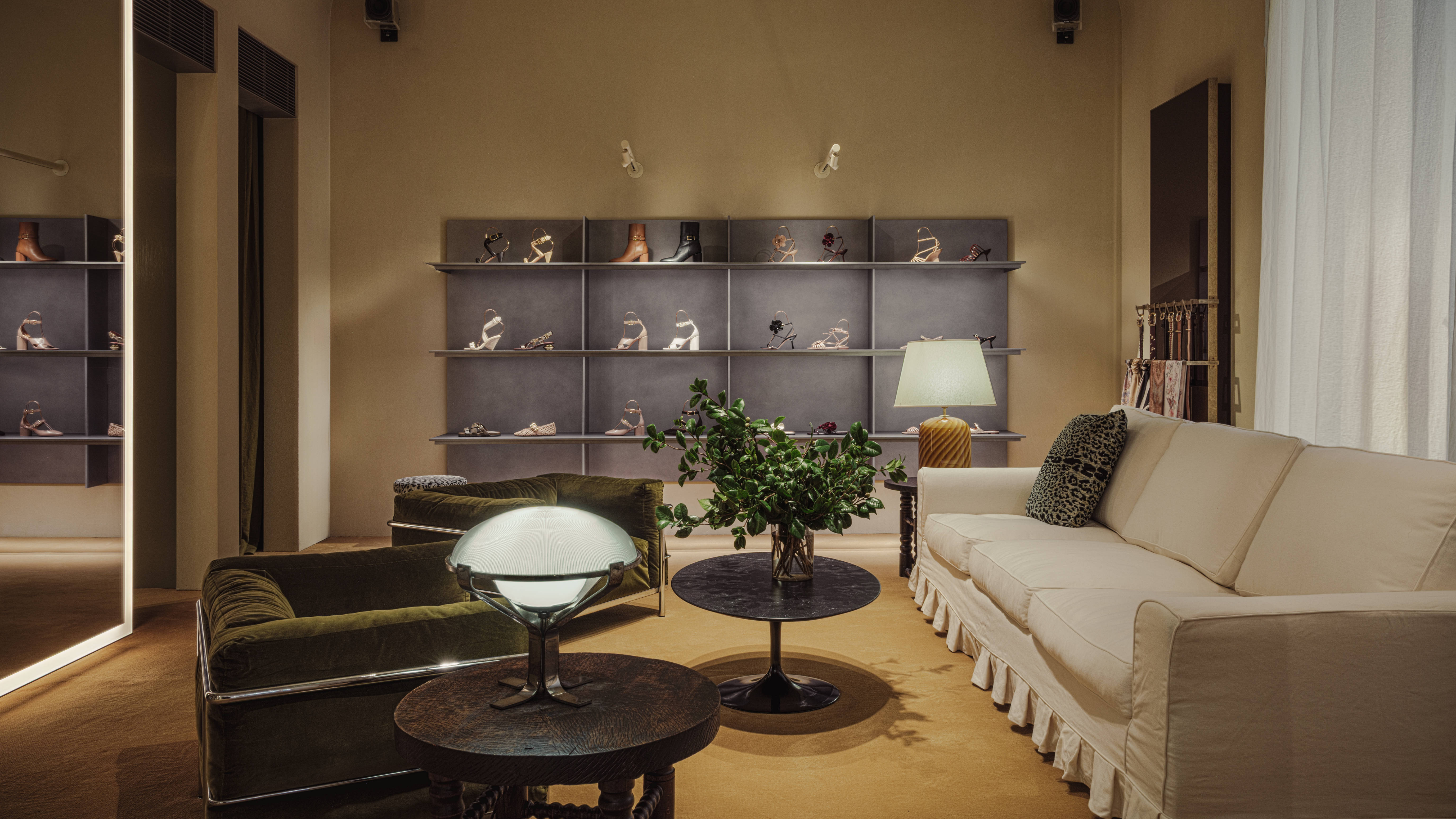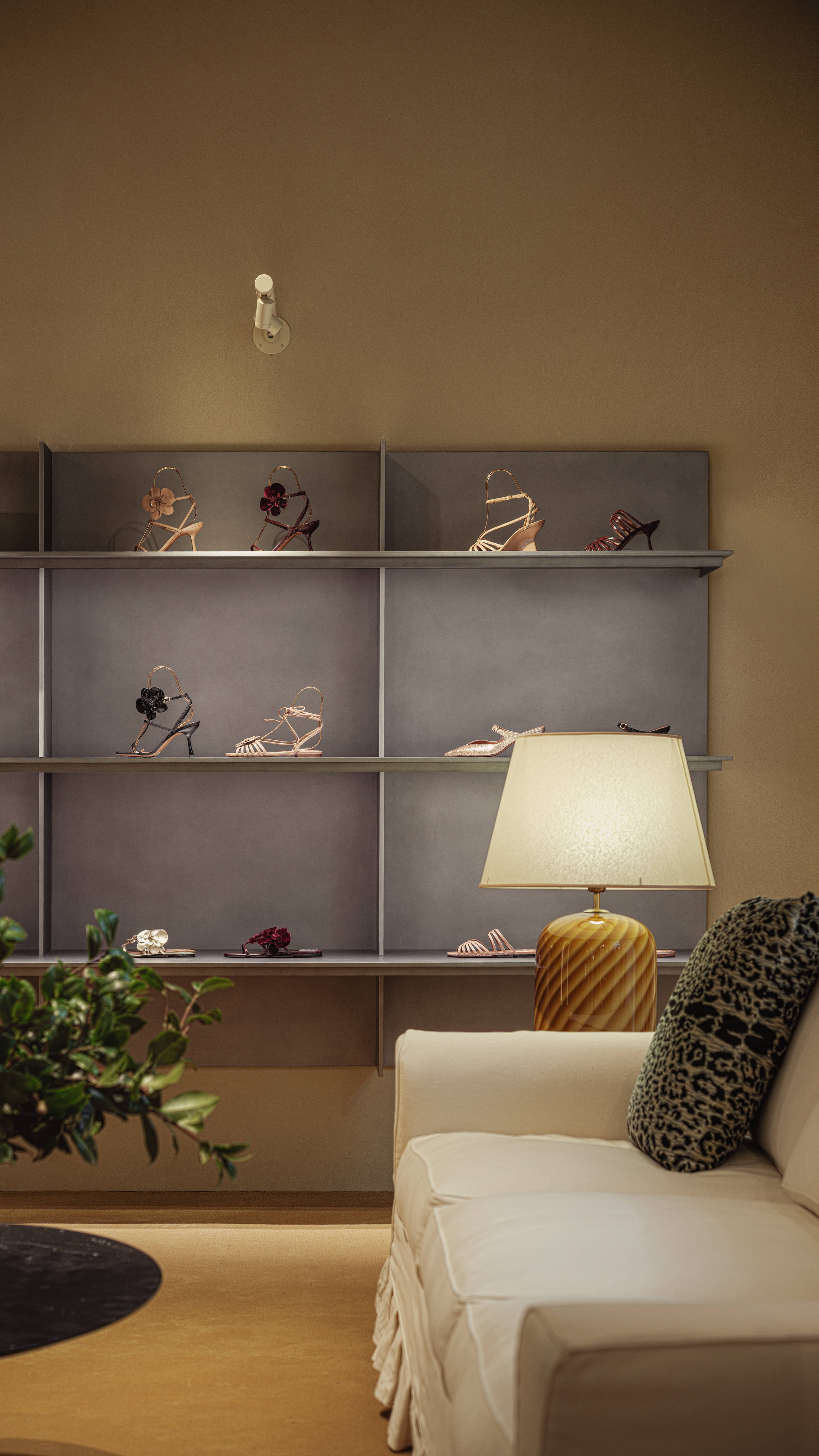 此次门店设计由品牌长期合作伙伴McQualter工作室倾力呈现,通过质感、色彩与细节的精致呼应,巧妙演绎了成都鲜活自在的独特气质。门店坐落于优越的转角位置,外立面采用粗陶质感饰面,与米白色定制釉面瓷砖相映成趣。实木门窗的温润质感与天然纹理,与定制意大利遮阳棚的复古韵味,构成一场精妙的视觉对话。 步入店内,空间布局循序铺展,定制水磨石地坪静谧彰显本地精湛工艺。令人瞩目的法式装饰艺术风格桌台于入口处迎候,周围环绕着错落有致的壁挂衣架、嵌入式展示壁龛及独立陈列柜,将品牌成衣系列优雅呈现。向内探寻,精心打造的臻致空间则聚焦于品牌包袋系列,配备专属陈列区与专业包袋服务台,于细节处尽显精妙巧思。