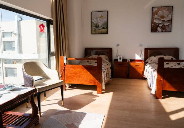 环境特色·自然惬意北京市海淀区国利来养老照料中心总占地约5000平方米,建筑面积3100平方米,配套近3000平米露天花园,绿植环绕、空气清新,是长者散步休闲、亲近自然的绝佳场所。室内配备高档纯实木家具,中央空调调节适宜温度,每个房间均设独立卫生间,24小时热水供应,居住体验兼具舒适与质感。